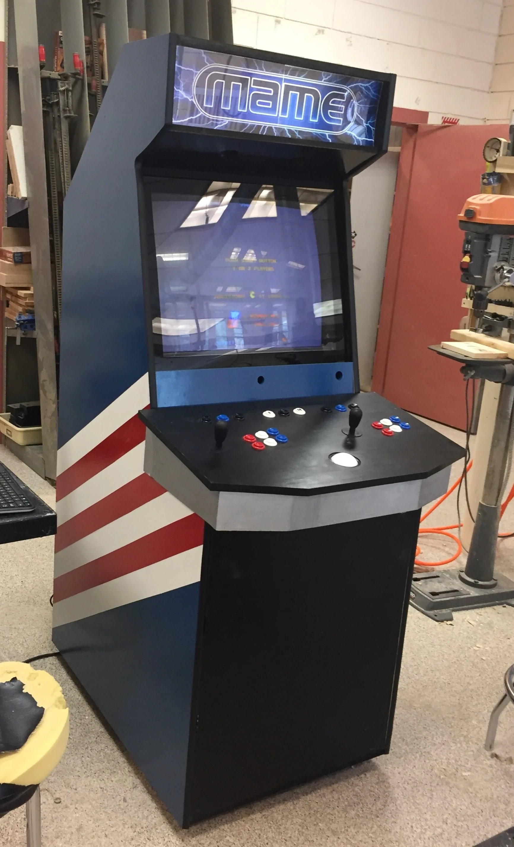 This is a MAME, or Multiple Arcade Machine Emulator. This is an arcade machine that I built from scratch in my High School woodshop. This arcade machine has over 7000 games and has room for 2 players. It also has a headboard with a name that illuminates when it is turned on as well as speakers. This project was done from January 2017- May 2017.