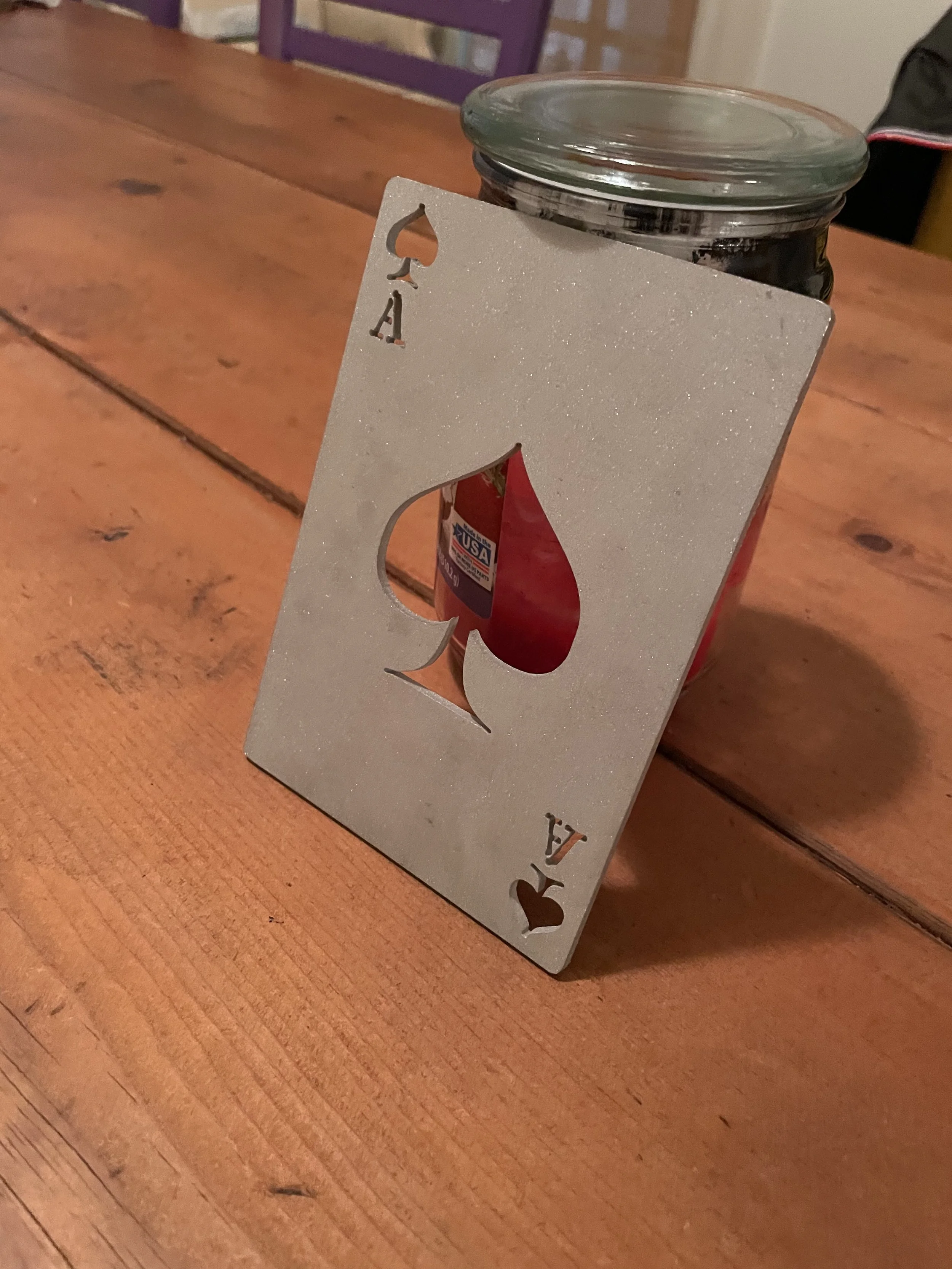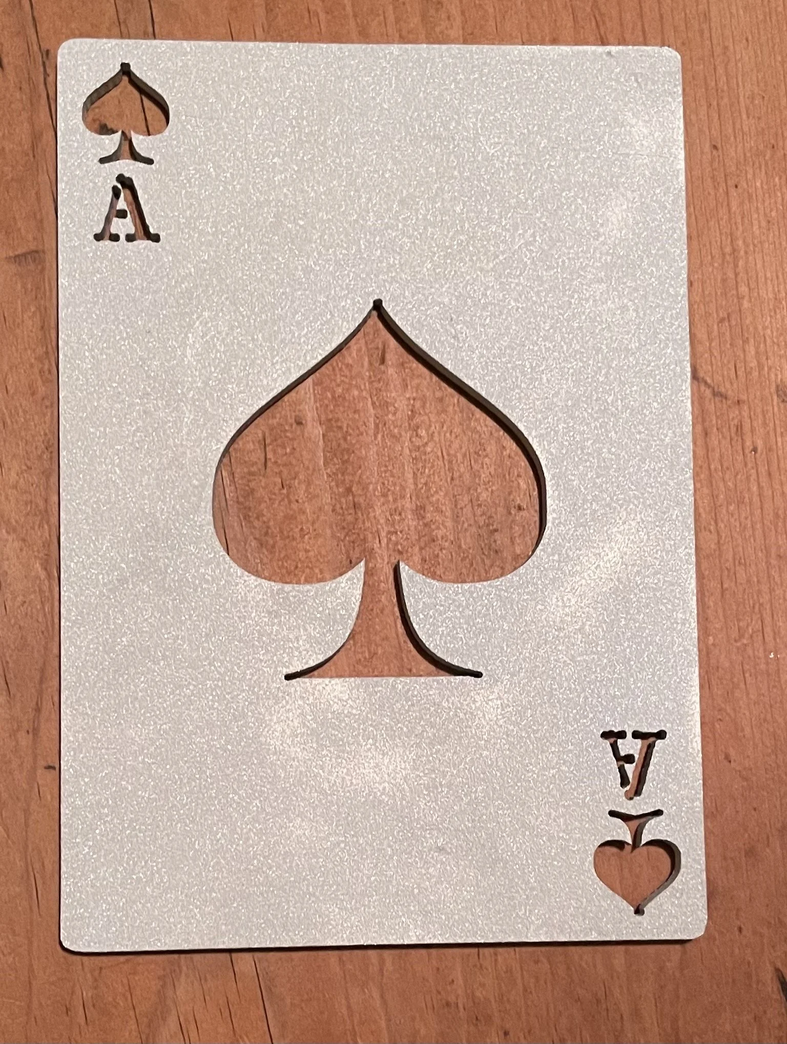 This was my first project on the water jet in the Tulane MakerSpace. The water jet is a jet that consists of water and some abrasive particles that is able to cut through strong materials such as steel. I designed this metal ace myself and use the water jet to cut it out of a steel sheet. After that, I used the blast cabinet to sandblast the ace in order to give it the nice matte look.