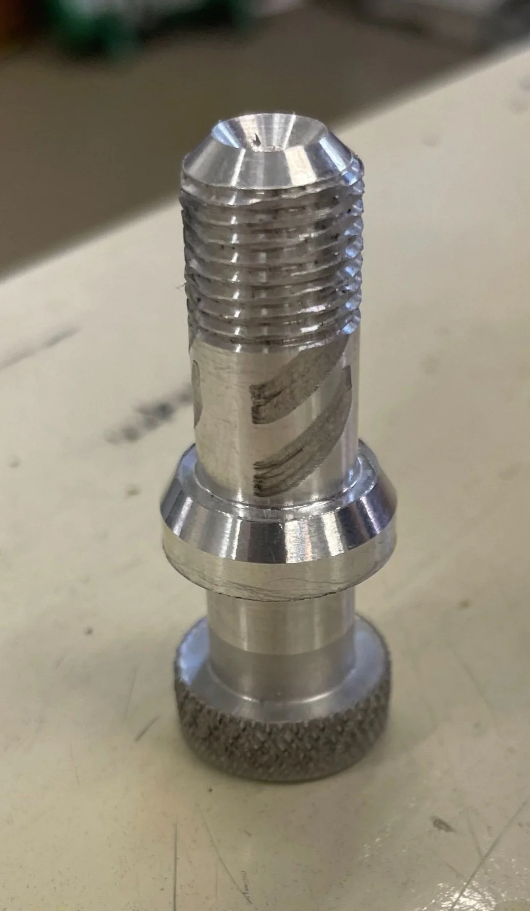 This screw was made as part of my training to use the CNC Lathe in the Tulane MakerSpace. This piece started as just a large steel cylinder and the lathe was used to carve out all of the different features.