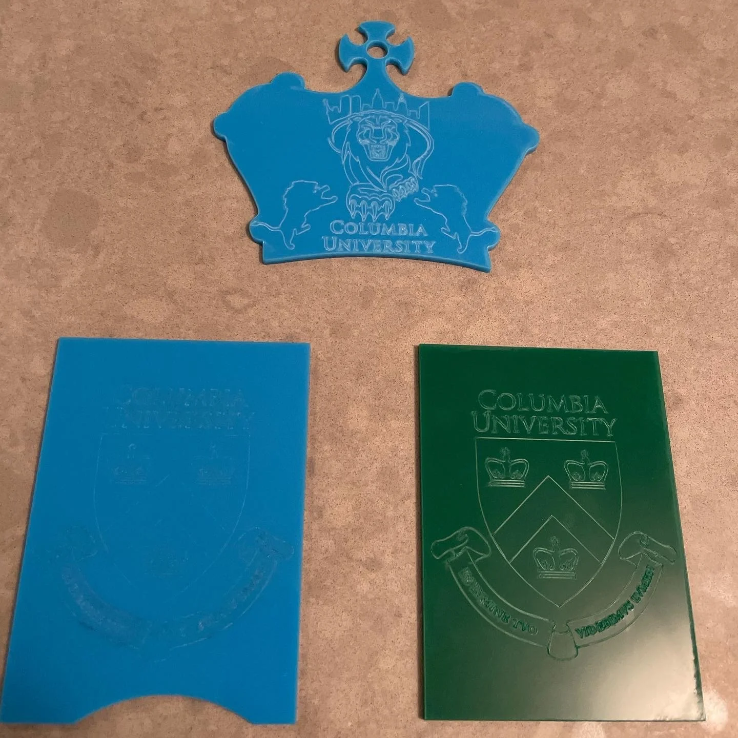 These are some personal designs that I laser cut out of acrylic. I laser cut these designs while playing around with and trying to learn the use of the laser cutters in the Columbia MakerSpace as they were slightly different than the ones I was used to at the Tulane MakerSpace. The design on the left would eventually be customized and turned into a Christmas ornament to be given as a gift.