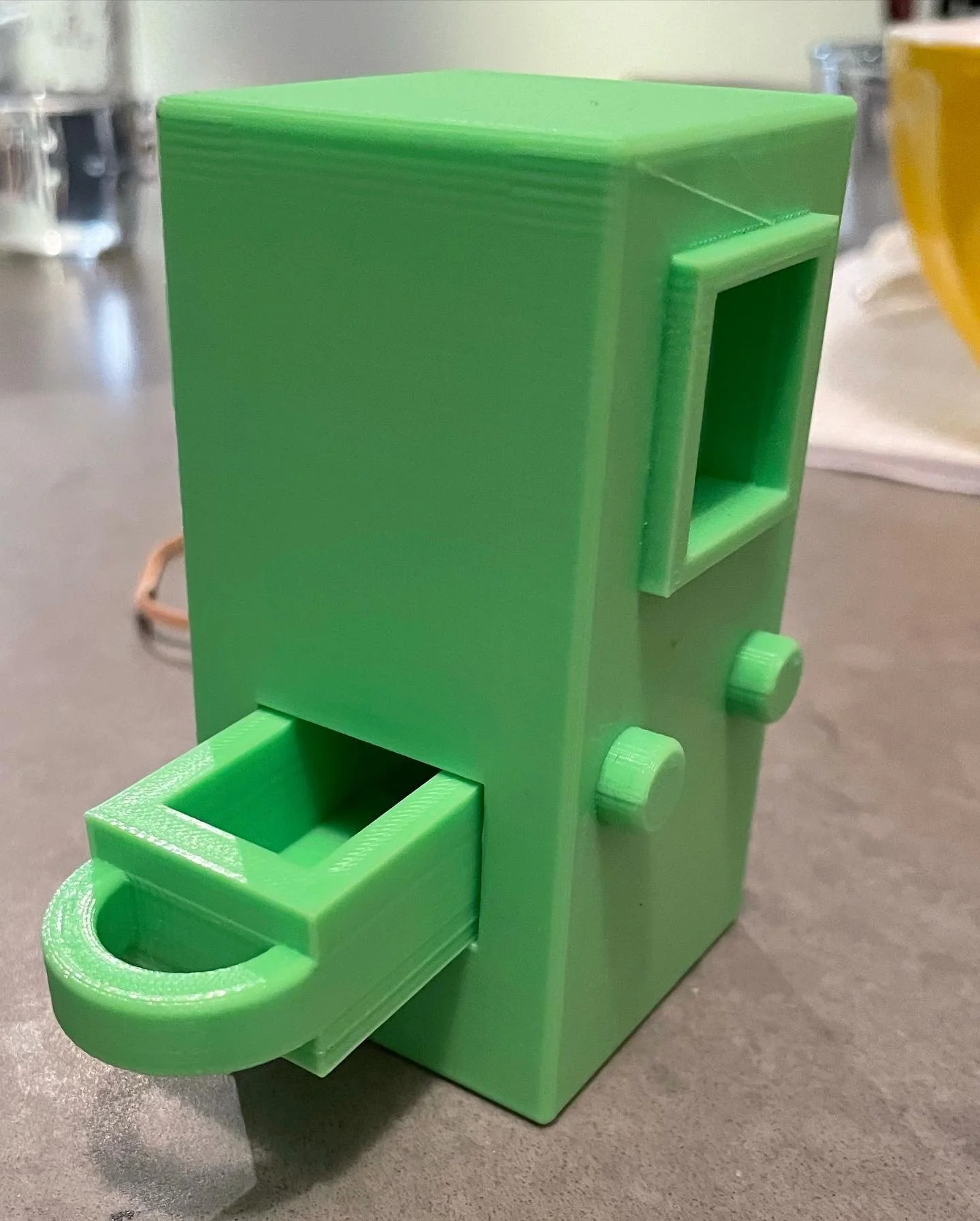 This is the final model of our prototype that has improvements from the first model determined by team discussion and research. This model was also designed by myself in Fusion 360. This version of the prototype model has a drawer that houses the test strip rather than a hole in the bottom of the device for the patient to input their finger into. We decided that this would significantly decrease the possibility of cleanliness issues. The corners of the device were also rounded out to make it safer and more visually appealing. The part of the model where the patient pricks their finger has also been removed in this model as it was determined the finger of the patient would be pricked by the ASHA worker with a separate lancet. The drawer would be cleaned by the ASHA worker after each use to ensure safety and prevent cross-contamination.