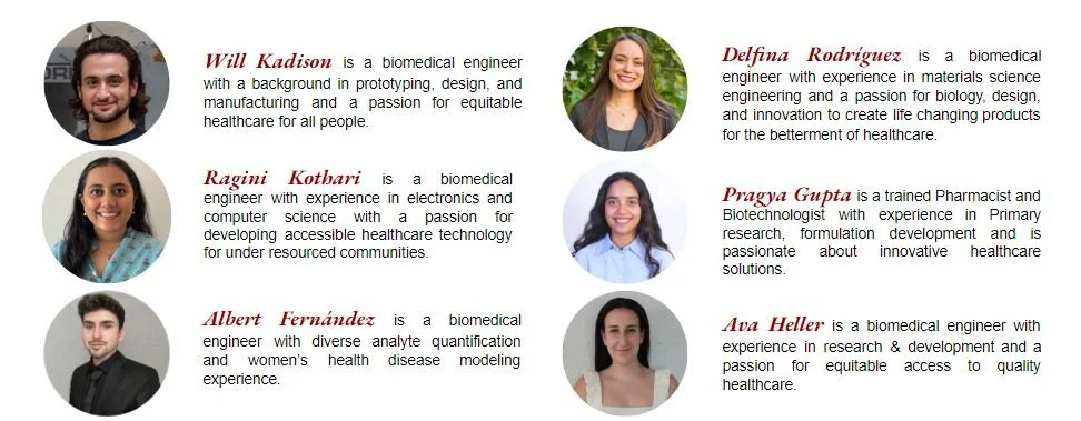 Our team consists of six graduate students at Columbia University, each equipped with diverse backgrounds and skill sets with a unified passion for global and women’s health. Additionally, multiple team members have direct ties to India providing access to key stakeholders.