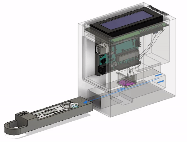 This is the most current model of our prototype. It consists of an RGB sensor, an Arduino Uno, and an LCD screen along with 3D printed parts. The LFA test strip is first placed in the drawer. The drawer is then placed into the device and the LFA test is given time to complete. At that point, the results will be read and displayed on the screen for the ASHA worker to interpret and communicate to the patient. The CAD model that I designed below illustrates this action. The mechanisms involved will be discussed further below.