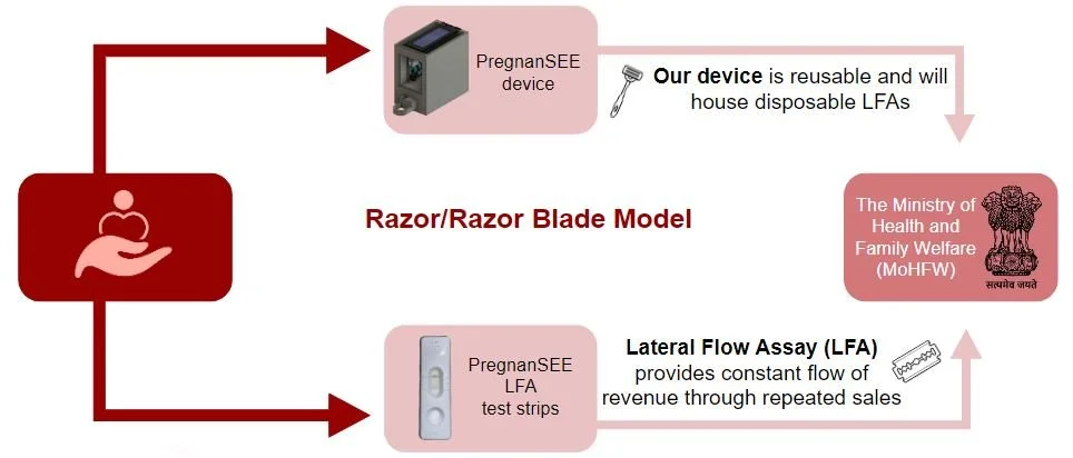 We intend to be a for-profit social enterprise and generate revenue through the razor/razor blade model. This would mean that the device is reusable but constant revenue is secured through the sale of a proprietary disposable component, the LFA. As we have mentioned, the existing healthcare infrastructure in India will accommodate our device through the ASHA workers. Regulatory mechanisms administered by the Ministry of Health and Family Welfare enable the funding of emerging technologies to provide ASHA workers with better tools to assess India’s rural pregnant population and provide accessible and effective quality healthcare.