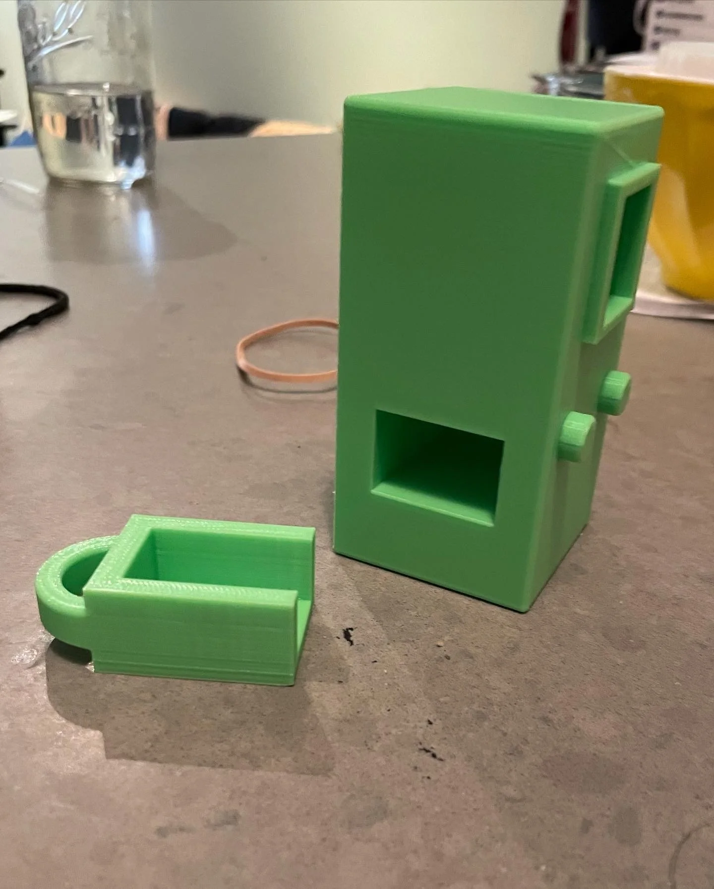 This is the most recent prototype. It is very similar to our third prototype but we cut the size down a lot to a much more condensed version that would be easier for the ASHA workers to carry. This prototype was also functional but we had started experimentation with the third prototype and decided to continue with that one to keep the experimentation consistent. This prototype was another that I designed in CAD with the final CAD model being seen in the image on the left.